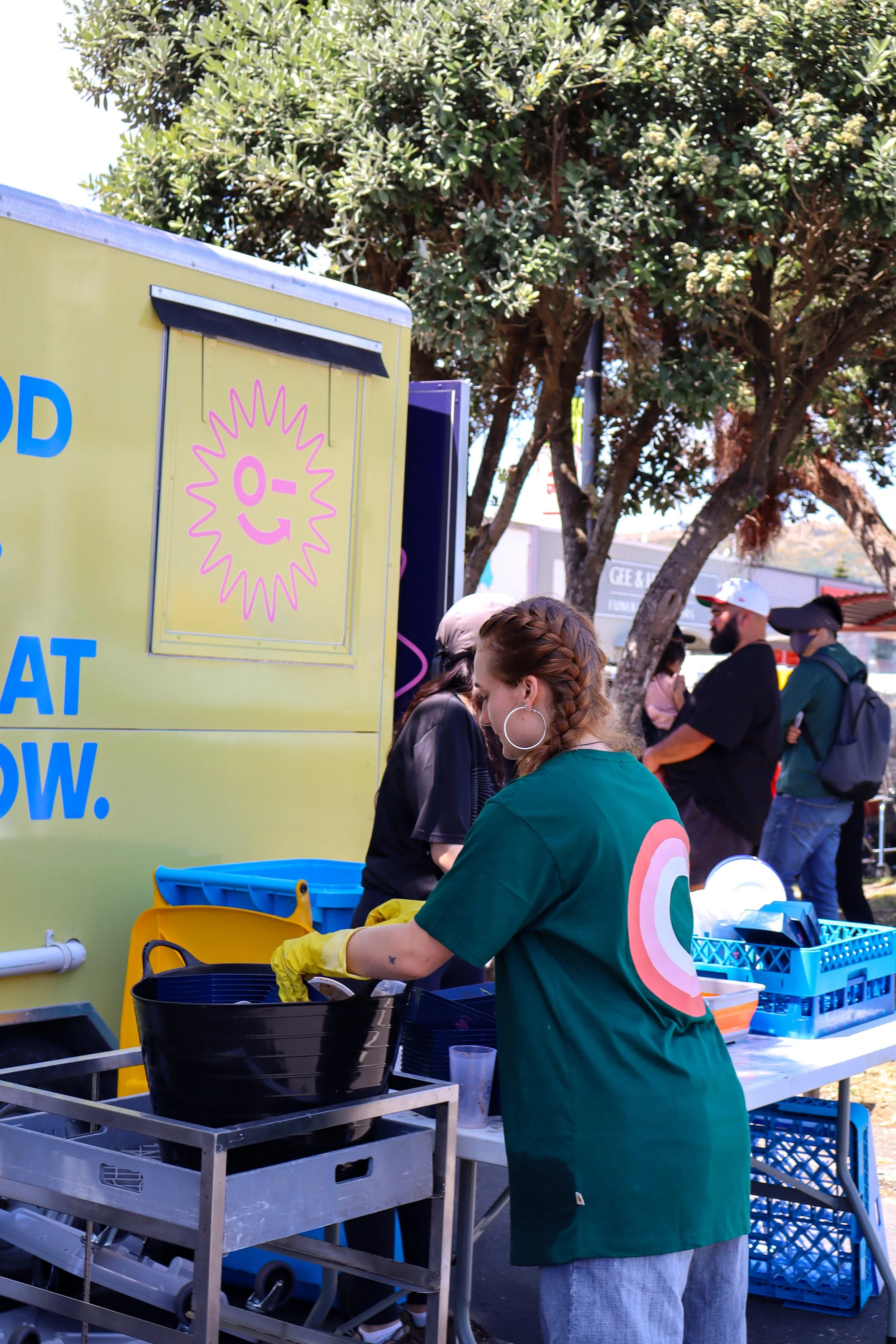 vendors and food trucks serving on reusables all day